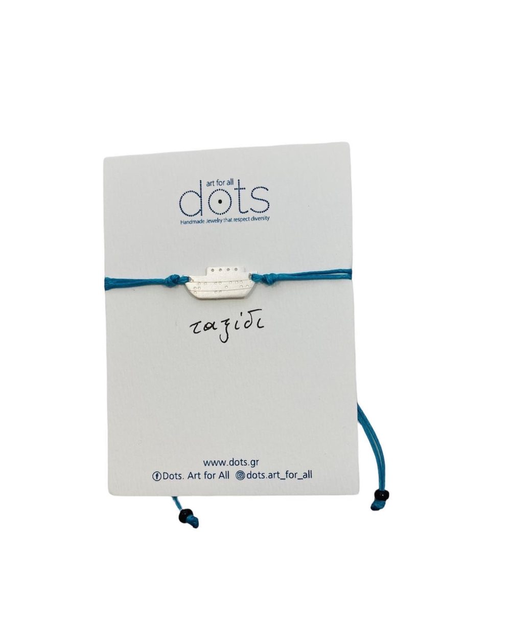 Βραχιόλι καραβάκι με τη λέξη ”Ταξίδι” χαραγμένη στη γραφή Braille.